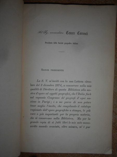CATALOGO RAGIONATO delle più rare o più importanti OPERE GEOGRAFICHE A STAMPA che si conservano nella Biblioteca del COLLEGIO ROMANO
