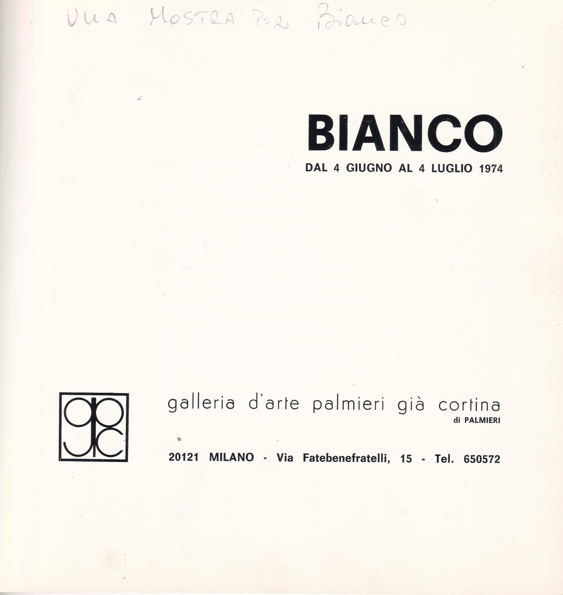 *Catalogo Remo Bianco - Mostra di un Bianco. Galleria Palmieri 1974