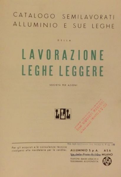 Catalogo semilavorati alluminio e sue leghe della Lavorazione Leghe Leggere: LLL.