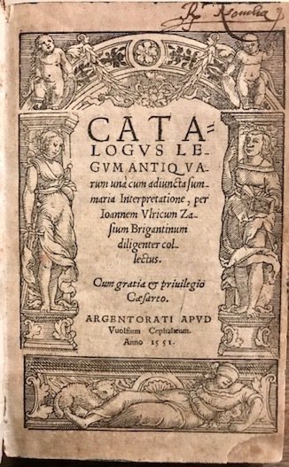 Catalogus legum antiquarum una cum adiuncta summaria Interpretatione, per Ioannem Ulricum Zasium Brigantinum diligenter collectus