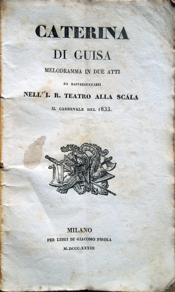 Caterina di Guisa. Melodramma in due atti da rappresentarsi nell'I. R. Teatro alla Scala il Carnevale del 1833