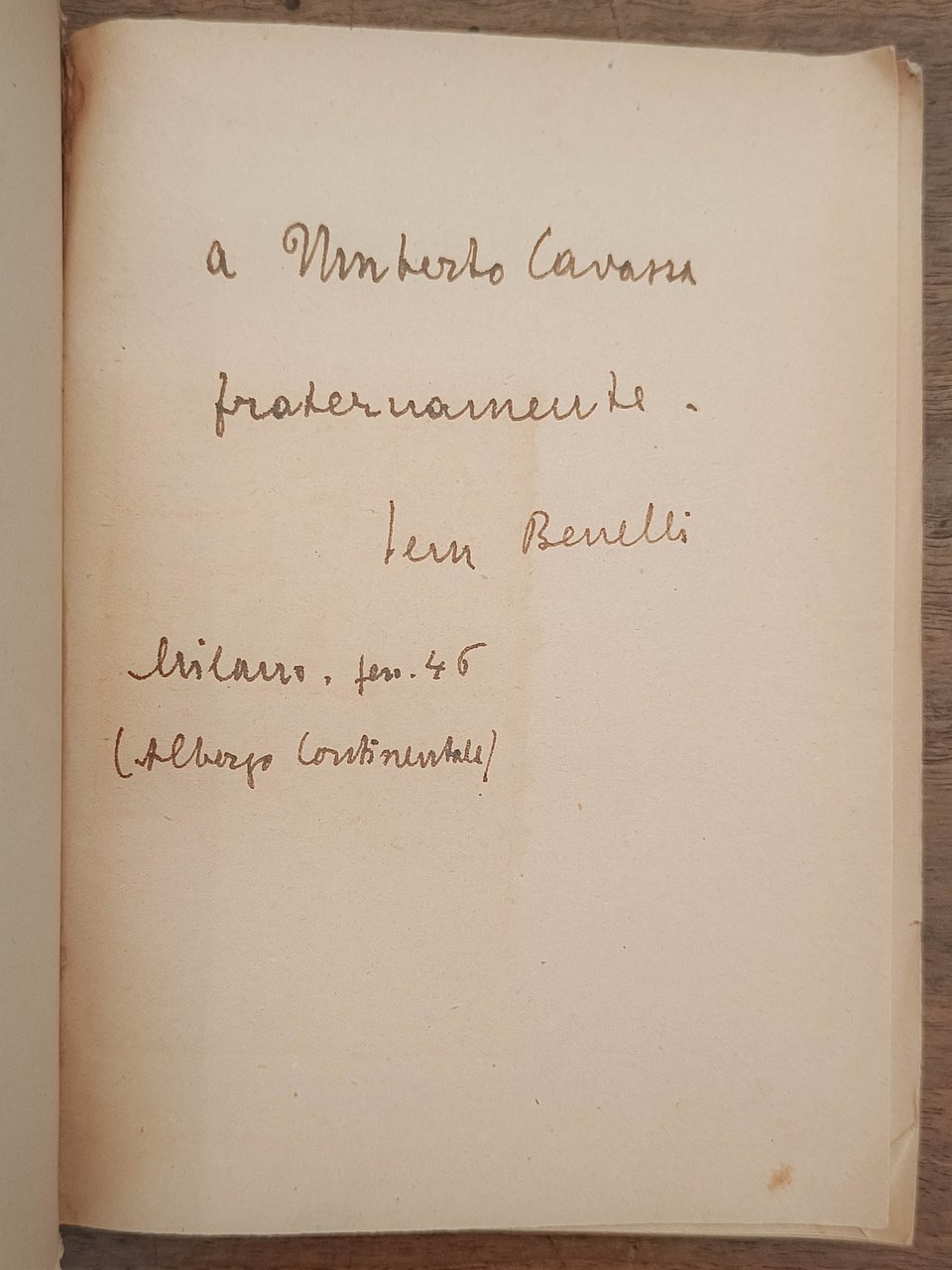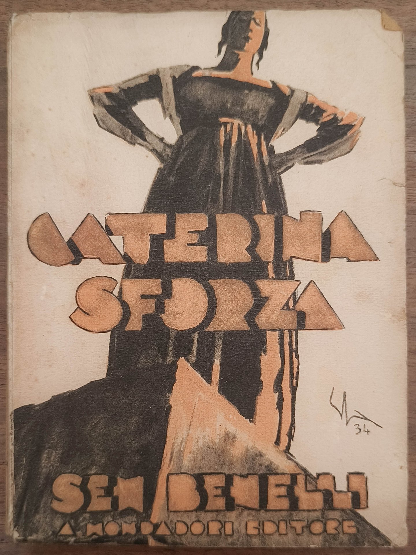 Caterina Sforza. Rappresentazione storica in tre parti e otto quadri, Milano, Mondadori, 1934. Cm 19,5. Pp. 269. Brossura editoriale illustrata da Sacchetti. Copertina sciupata. Carte leggermente brunite. Dedica autografa dell'autore all'avvocato e politico L. Reda datata "Milano gen. 1934".