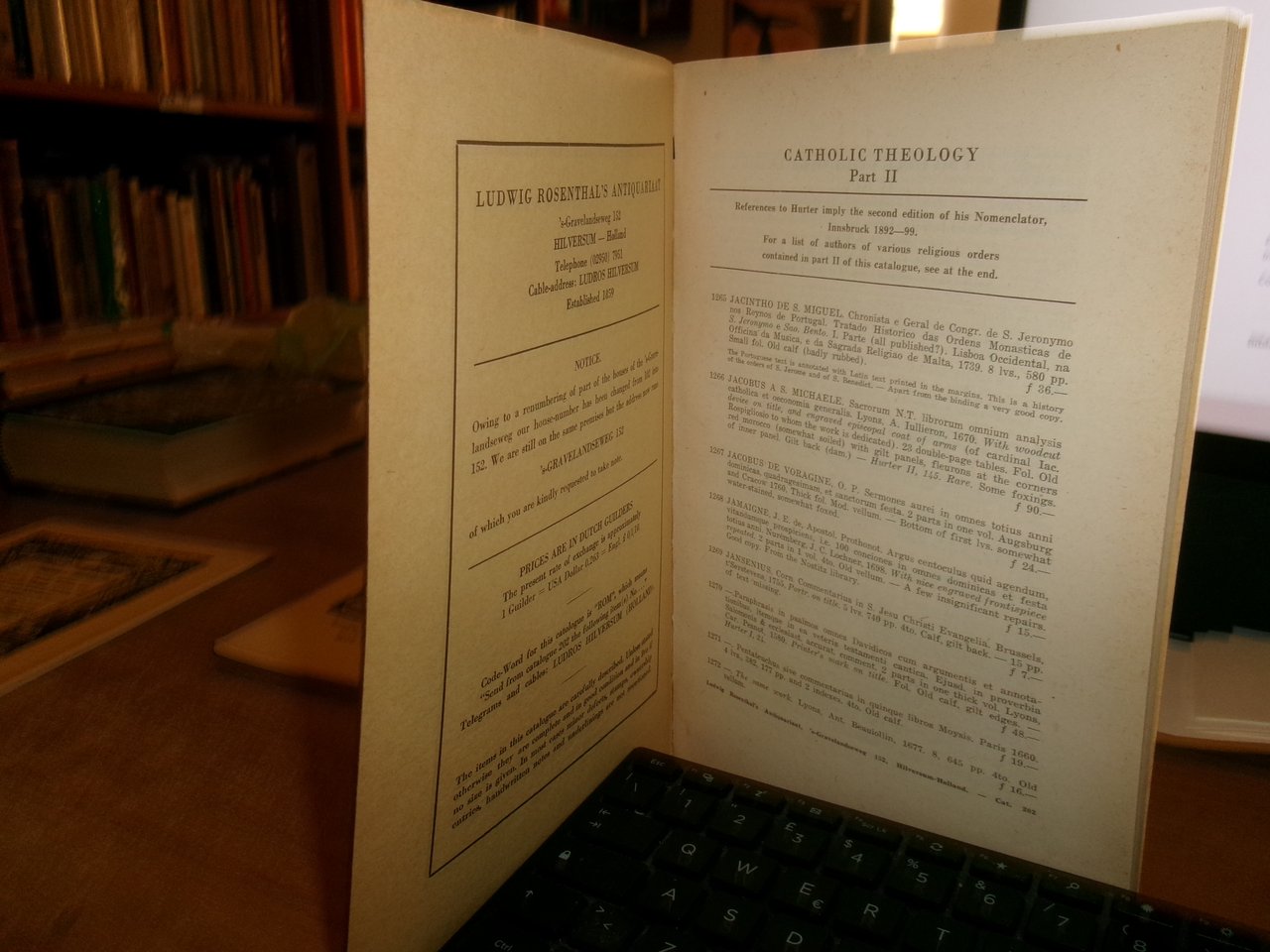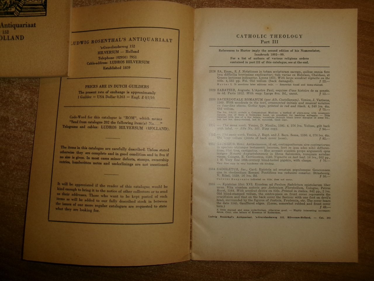 CATHOLIC THEOLOGY 3 cataloghi. LUDWIG ROSENTHAL'S ANTIQUARIAAT (1955)
