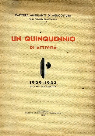 Cattedra Ambulante di Agricoltura per la Provincia di Alessandria. Un quinquennio di attività. 1929 - 1933. VIII - XII Era Fascista