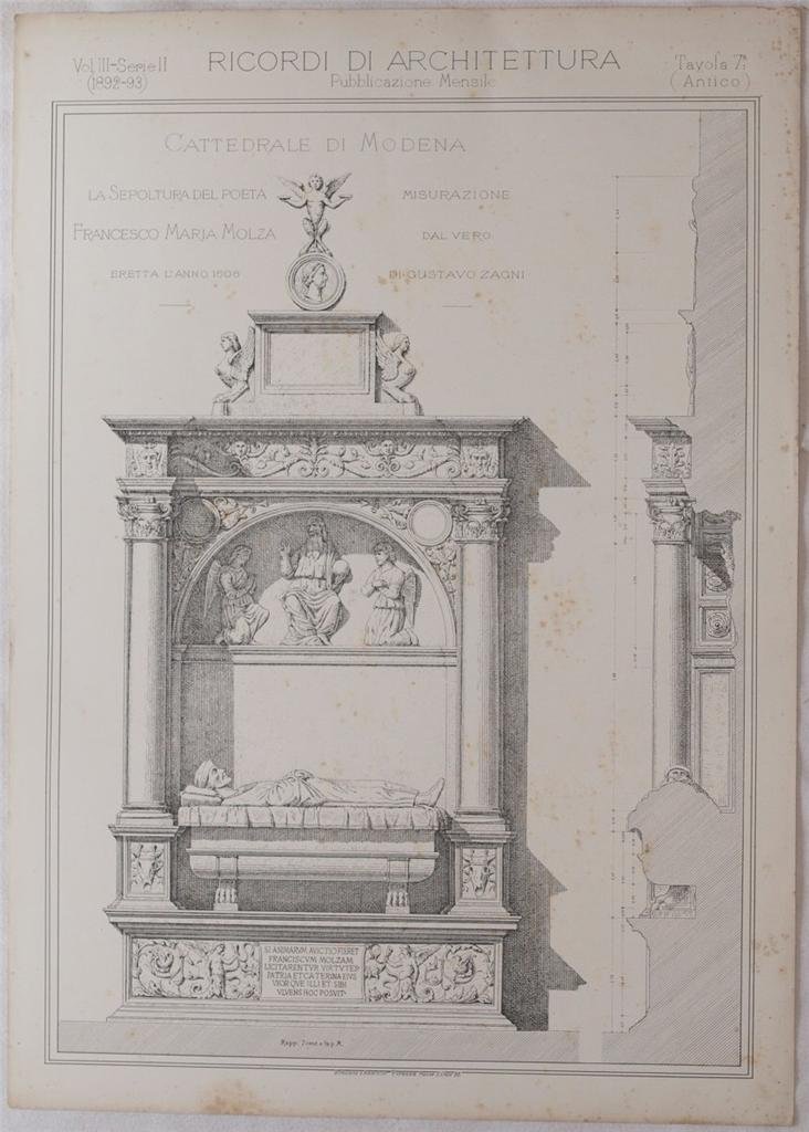 CATTEDRALE DI MODENA LA SEPOLTURA DEL POETA FRANCESCO MARIA MOLZA ERETTA L'ANNO 1508 MISURAZIONE DAL VERO DI GUSTAVO ZAGNI