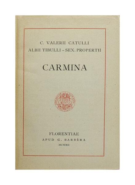 Autore: Catulli, Tibulli, Propertii Titolo: Carmina Edizione: Florentiae Apud G. Barbèra - 1912 Dimensioni: 8 x 12 cm c.a. Pagine: 295 Copertina: Cartonato Condizioni: Ottime come da foto
