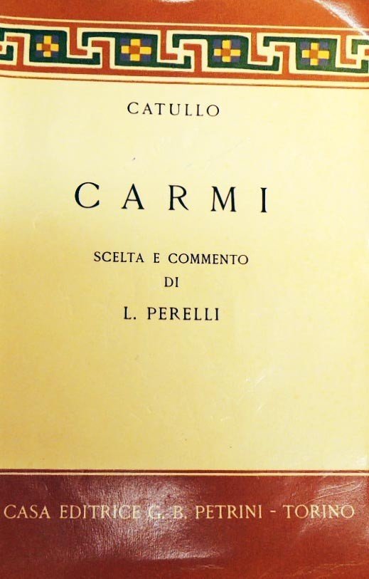 Catullo, Carmi, scelta e commento di L. Perelli, G. B. Petrini, Torino 1960, pp. XIX, 193, 4 c. di tavv. f. t. ill. b. n., cm 21, br. ed. Sporadiche sottolineature, segnetti e annotazioni manoscritte a lapis e biro, ma nel complesso esemplare ancora in buono stato di conservazione.
