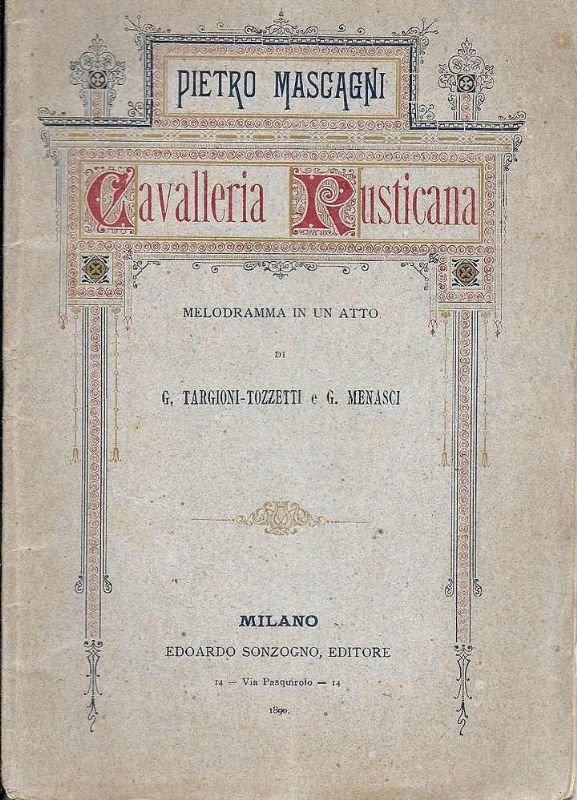 Cavalleria Rusticana, melodramma in un atto di G. Targioni-Tozzetti e G. Menasci.