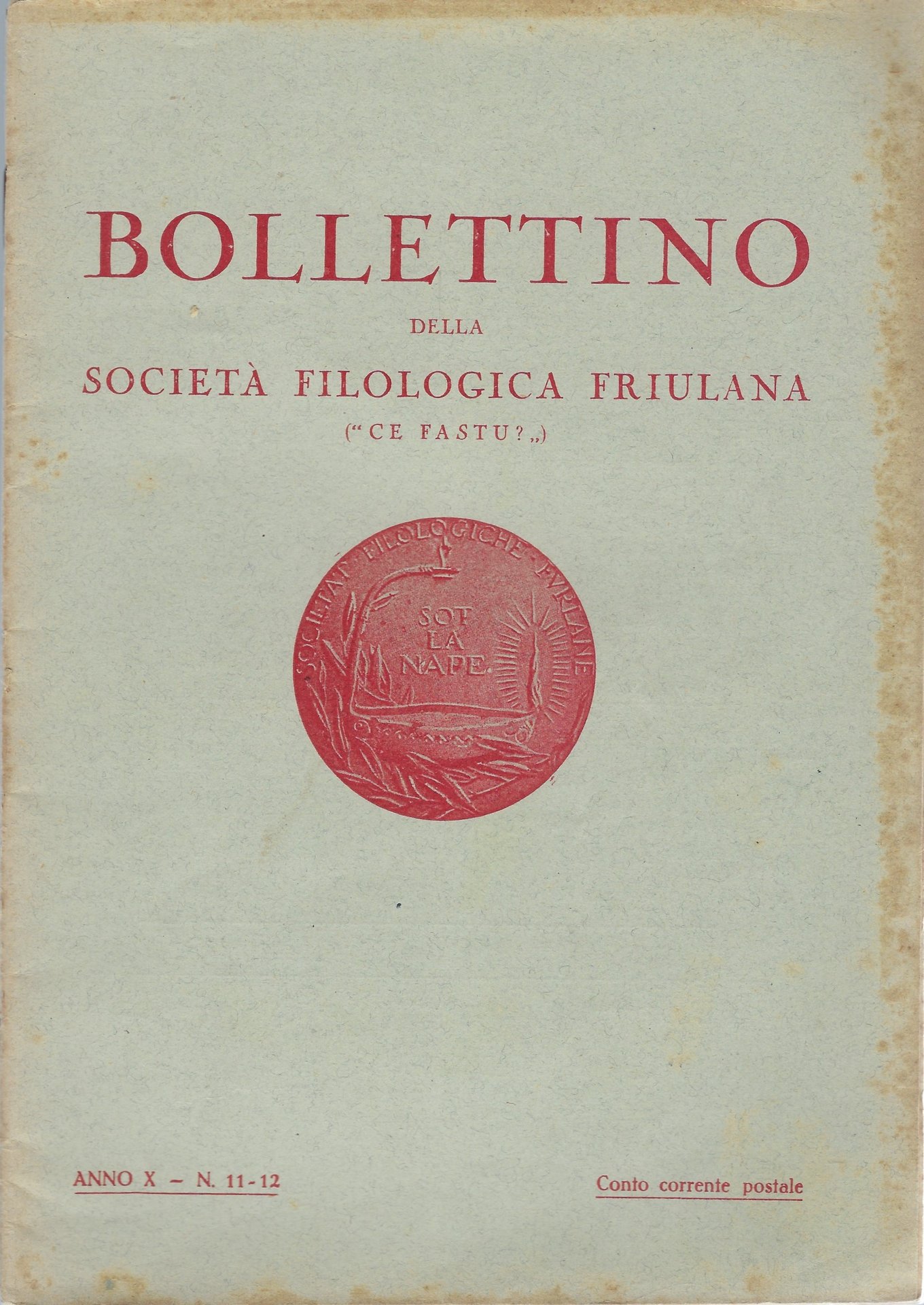 "Ce fastu?" Bollettino della Società filologica friulana Anno X - N° 11 - 12