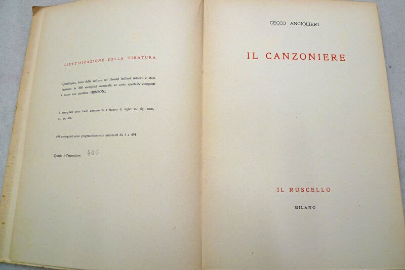 Cecco Angiolieri,IL CANZONIERE,1946 Il Ruscello,edizione numerata[poesia