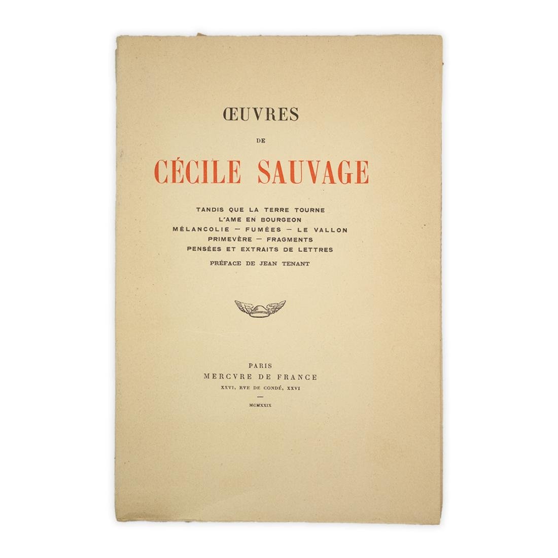 ŒUVRES de Cécile Sauvage Tandis que la terre tourneL'ame en bourgeonMélanclie - Fumées - Le VallonPrimevère - FragmentsPensées et extraits de lettres Préface de JEAN TENANT Editore: Mercvre de France XXVI, Rve de Condé, XXVI.Paris MCMXXIX. Lingua: FranceseDimensioni: 13,5 x 20,5 cmPagine: 345Copertina: BrossuraCondizioni: ottime come da immagini
