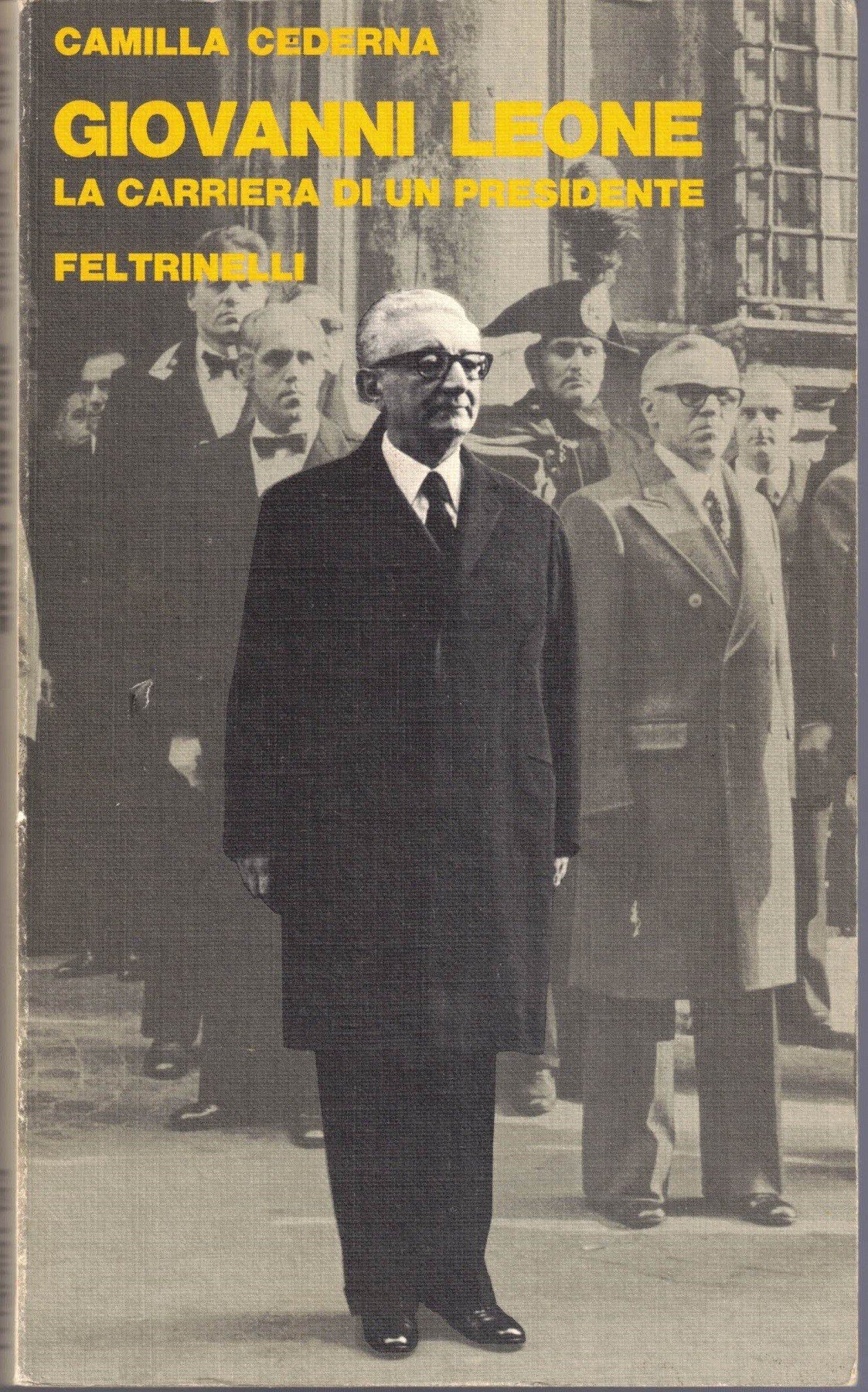 Camilla Cederna, Giovanni Leone. La carriera di un presidente, Feltrinelli Editore, Milano 1978, quindicesima ed., pp. 252, cm 21, br. ed. Collana Attualità. Ordinarie tracce d’uso, uniforme brunitura della carta, per il resto buona copia.