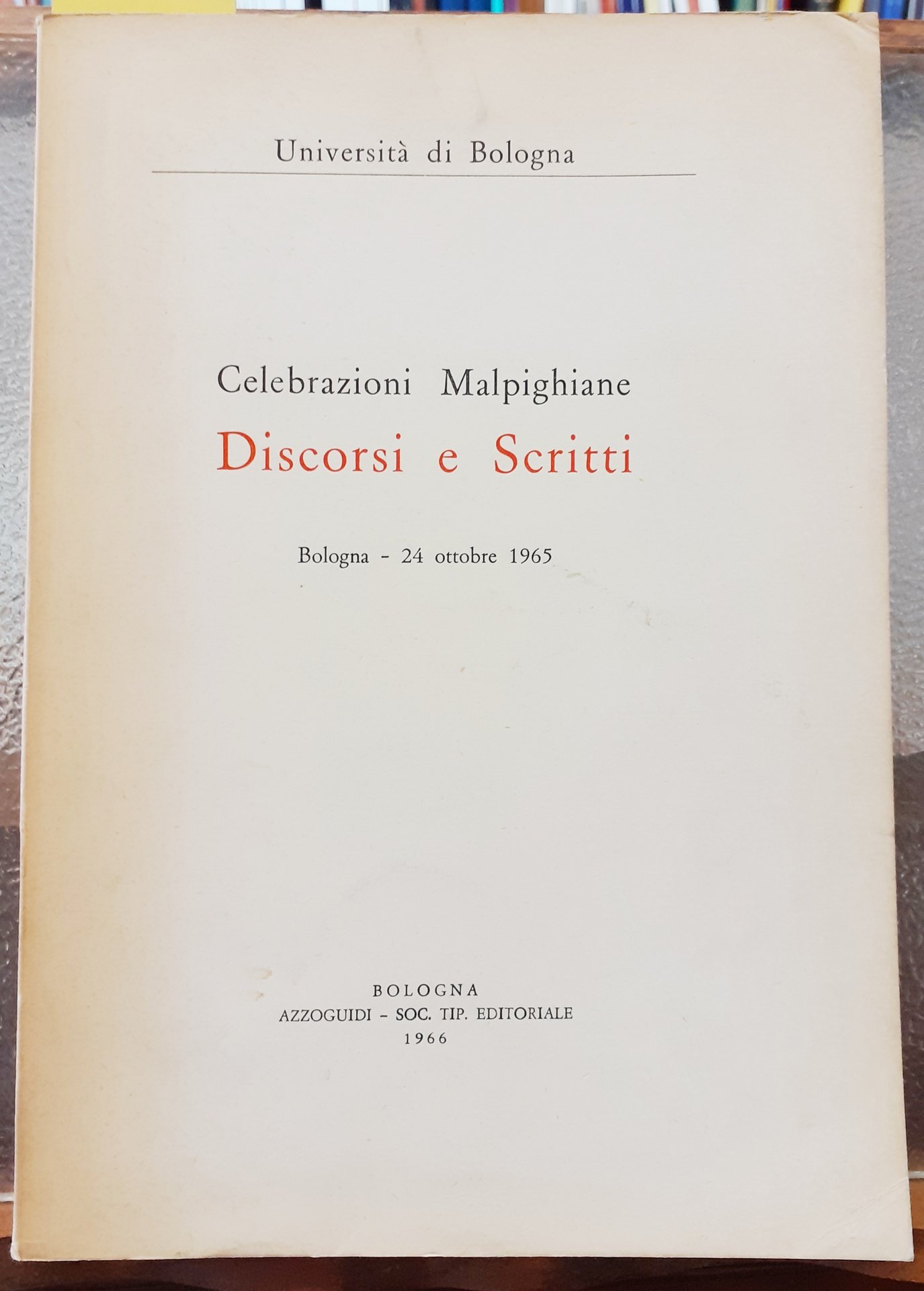 CELEBRAZIONI MALPIGHIANE: DISCORSI E SCRITTI. Bologna-24 ottobre 1965., Università di Bologna.
