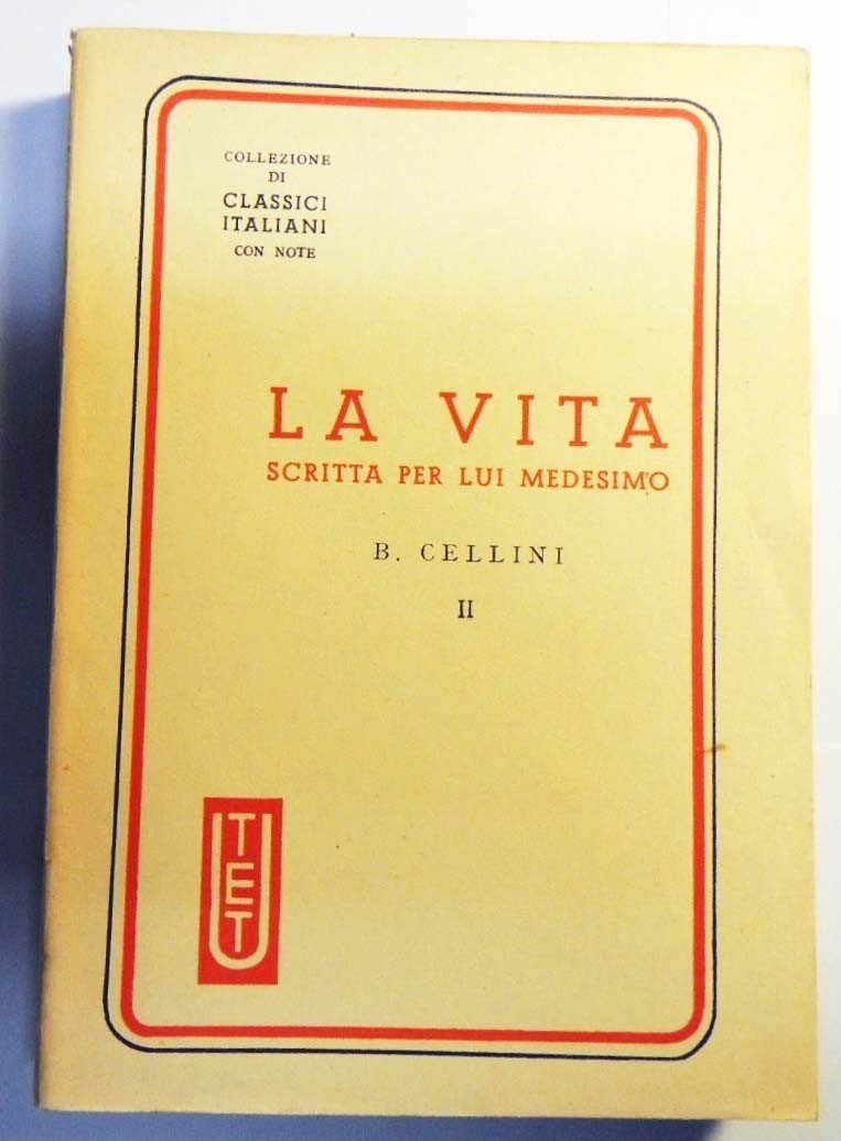 Benvenuto Cellini, La vita scritta per lui medesimo, a cura di Enrico Carrara, Unione tipografico-editrice torinese, Torino 1944, 2 voll., pp. XXXVIII, 553, cm 17, br. ed. Collana Collezione di classici italiani con note, n. 54-55. Lievi segni del tempo alla brossura, per il resto perfetti.