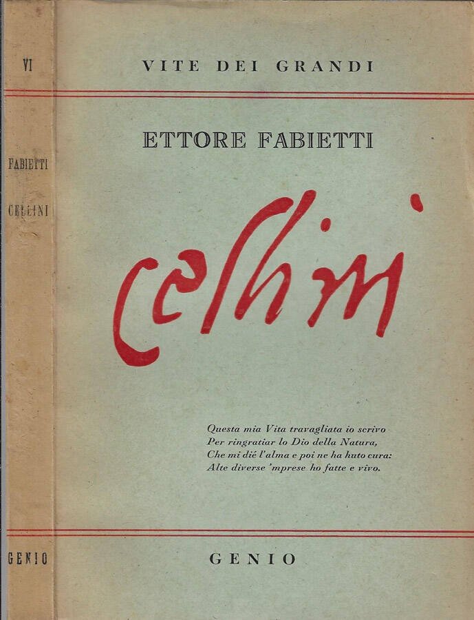 Numero "VI" della collana "Vite dei grandi" diretta da Ettore Fabietti. Copertina ingiallita dal tempo mostrante segni di usura ai margini e tracce di brunimento ai piatti. Pagine godibili anche se brunite dal tempo, in particolare ai tagli. Numero pagine 221.