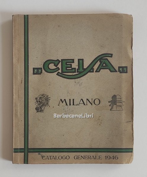 Catalogo commerciale dell'azienda C.E.L.S.A., ditta fondata nel 1912 con sede a Milano, specializzata nella vendita di materiali, componenti e apparecchi elettrici di ogni tipo: interruttori, commutatori, deviatori, valvole, prese, spine, morsetti, lampade, fari, lanterne, fanali, amperometri, dinamo, ferri da stiro, stufe e fornelli elettrici, telefoni e molto altro...