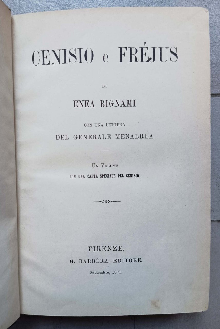 - Un volume con una carta speciale del Cenisio. Firenze, G. Barb