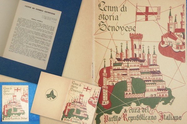 [Genova Storia](cm. 14) brossura editoriale figurata in rosso e verde. -pp.16. Volumetto contenente la Storia della citt‡ a cura di A. Poggi. Senza data ne note tipografiche, esemplare fuori commercio. [n20]