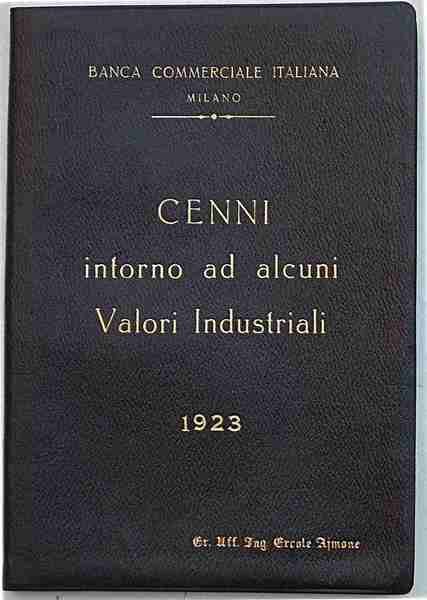 In 8° (cm. 24,5 x 17); pagg. 94; legatura personalizzata per il Gr. Uff. Ing. Ercole… in tela originale nera con titoli in oro. VG. ** Seconda edizione. Allegato biglietto di visita di G. L. Topelitz A.D. della banca. Storia, attività, risultati economici, amministratori di 24 società. A ciascuna sono dedicate 2 - 3 pagine: Terni, Generale Elettrica dell'Adamello, S.I.P., Ilva, Breda, Dalmine, Montecatini, Candele Steariche di Mira, La Rinascente…