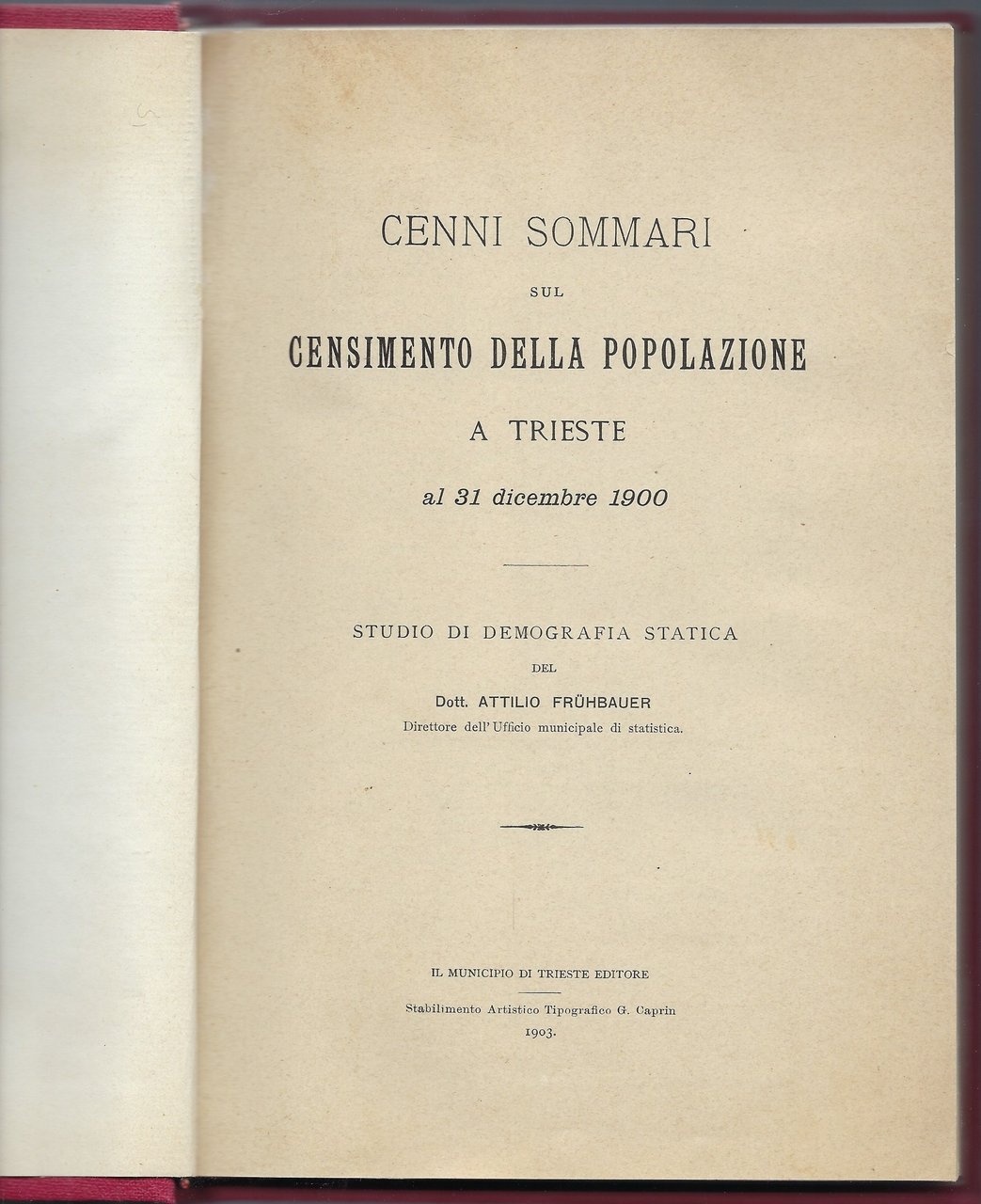 Cenni sommari sul censimento della popolazione a Trieste al 31 dicembre 1900