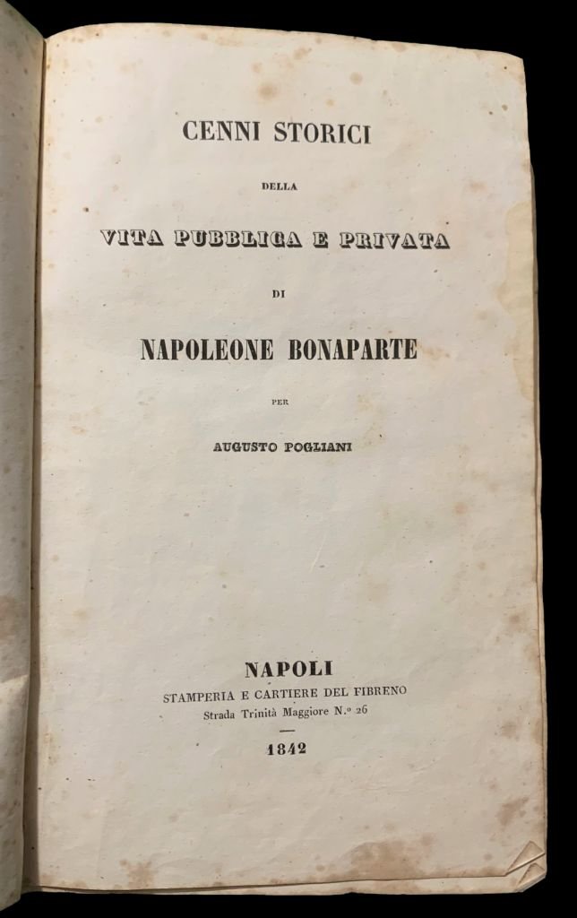 In 8°; 393, (1) pp. Bella legatura coeva in mezza-pelle scura con titolo e ricchi ed eleganti fregi in oro al dorso. Qualche stofinatura, qualche minima macchiolina di foxing e nel complesso, esemplare in buone condizioni di conservazione. Prima ed unica edizione di questa curiosa opera di interesse napoleonico nel quale l'autore cerca di ricostruire la personalità di Napoleone attraverso gli avvenimenti ed i fatti che ne caratterizzarono, la vita privata. Opera non comune.
