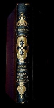 In 8° piccolo; VIII, 256 pp. Bella legatura coeva in mezza pelle blu con autore, titolo, anno di pubblicazione e ricchi fregi in oro al dorso. Esemplare in buone-ottime condizioni di conservazione. Studio anonimo che ripercorre la storia della repubblica di Genova. Lultima parte del volume contiene la lista cronologica di tutti i Dogi, personalità pubbliche importanti e dei Vescovi di Genova dal 1090 al 1859. cenni storici furono somministrati dal Sac. Paolo Rebuffo; i documenti furono riordinati dal March. Vincenzo Ricci; il catalogo e lavoro del Can. Luigi Grassi, bibliotecario della R. Universita di Genova. Una prima edizione non risulta censita da nessuna parte. Opera non comune. Passano suppl. al Melzi, p. 65.