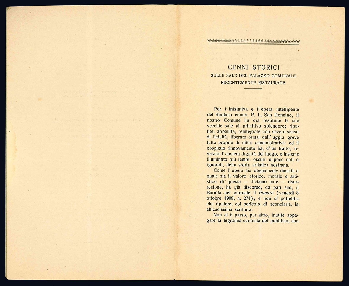Cenni storici sulle Sale del Palazzo Comunale, recentemente restaurate.