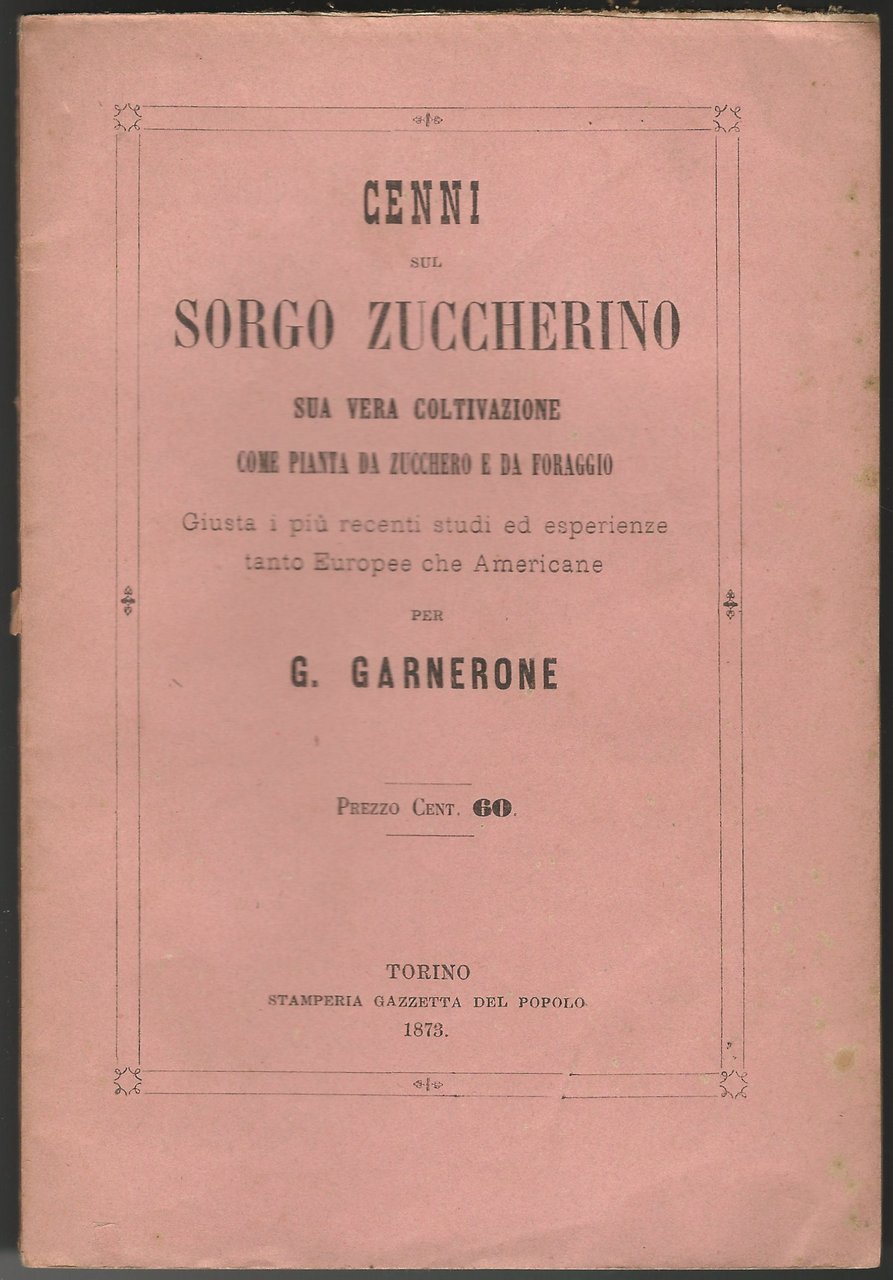 Cenni sul sorgo zuccherino. Sua vera coltivazione come pianta da zucchero e da foraggio giusta i più recenti studi ed esperienze tanto europee che americane.