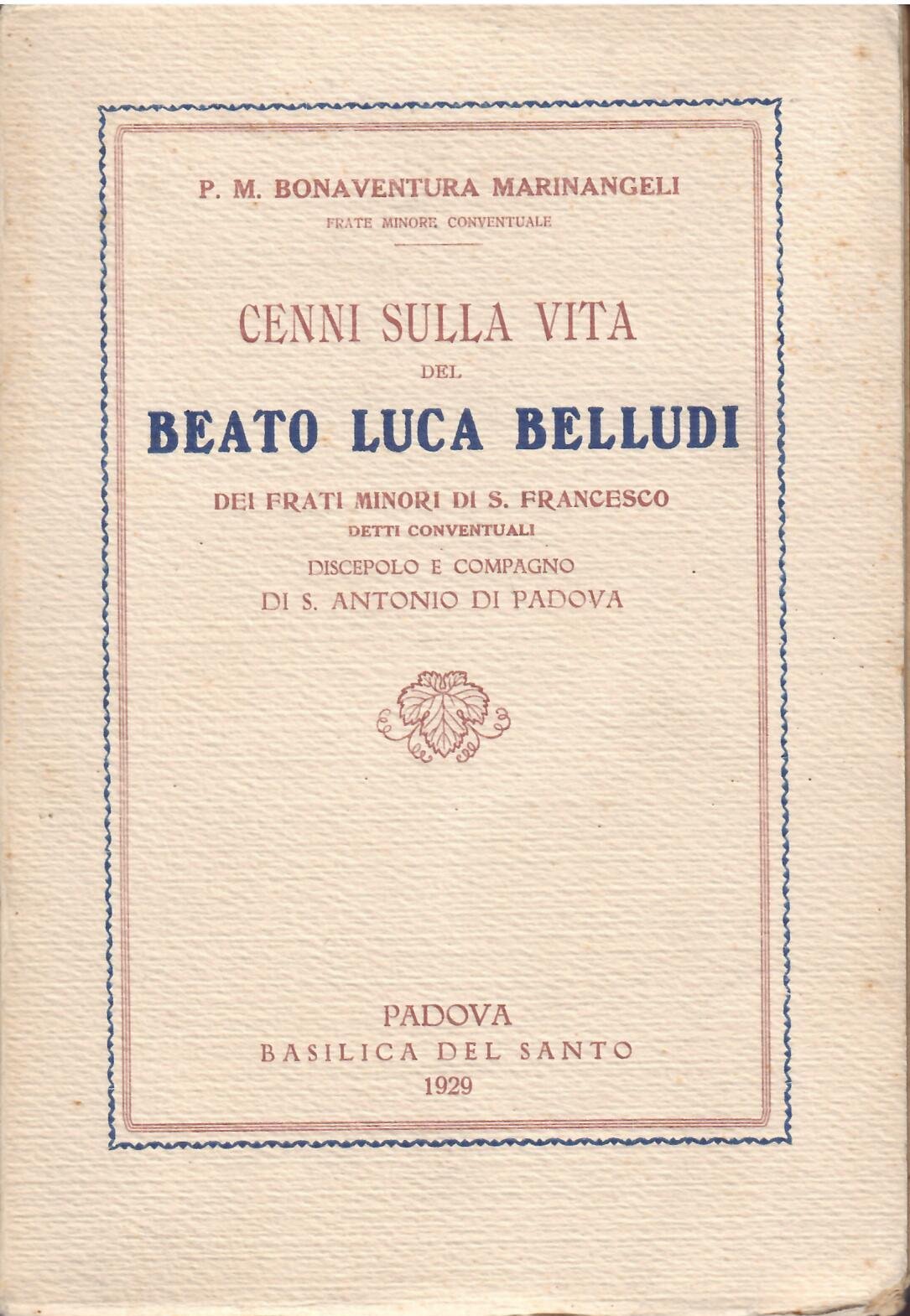 CENNI SULLA VITA DEL BEATO LUCA BELLUDI DEI FRATI MINORI DI S. FRANCESCO DETTI CONVENTUALI DISCEPOLO E COMPAGNO DI S. ANTONIO DI PADOVA