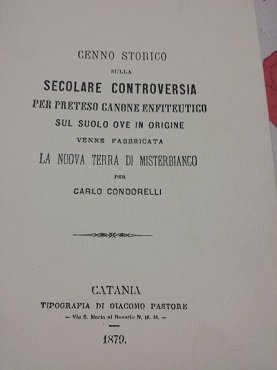 CENNO STORICO SULLA SECOLARE CONTROVERSIA PER PRETESO CANONE ENFITEUTICO SUL SUOLO OVE IN ORIGINE VENNE FABBRICATA LA NUOVA TERRA DI MISTERBIANCO