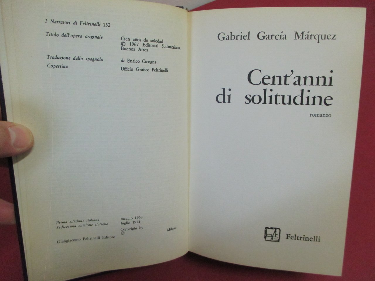 In – 8vo, copertina rigida, pp. 426 ( 6 ). Collana " I Narratori di Feltrinelli ". Traduzione di Enrico Cicogna.