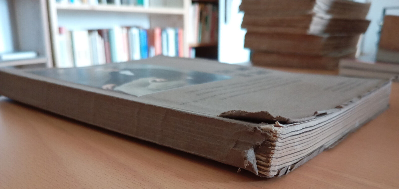 Copertina con segni di usura, come da foto. Tagli scuriti pagine con fioriture, come da foto