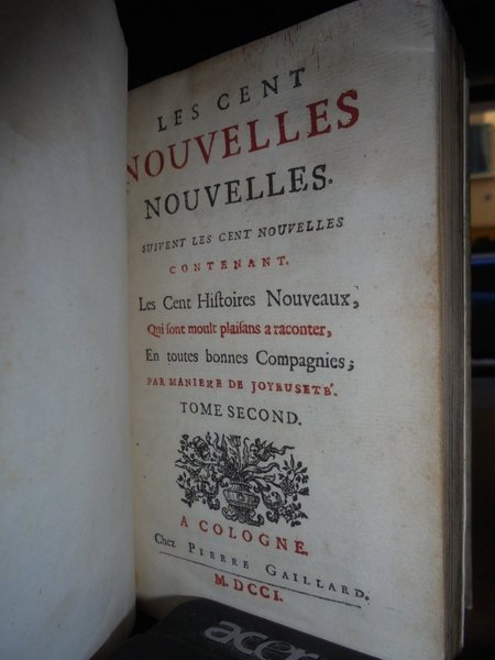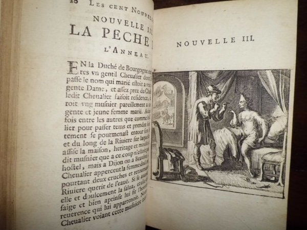 Cologne (Amsterdam), Pierre Gallard, 1701. 2 volumi in-8° picc., pergamena recente uso antico, taglio dorato. Antiporta allegorica, (30), 349 pp.; (24), 325 pp. con 100 belle tavole disegnate da Romeyn de Hooge e finemente incise in rame da G. Van de Gouwen. Pregevole esemplare della tiratura con le tavole f.t. Celebre raccolta di novelle in prosa, la prima genuinamente francese, scritta nel secolo XV alla corte di Luigi XI, forse da Antoine de la Sale (ca. 1388-1465). Si ispira al Boccaccio e al Poggio e per lo stile semplice, schietto e vivo, specialmente nel comico, ebbe un notevole successo. Edizione particolarmente pregevole per le artistiche illustrazioni del celebre Romeyn de Hooge (1645-1708), qui pubblicate per la prima volta. Cohen-Ricci, 638. Gay-Lemmonier, I, 519. Cas.