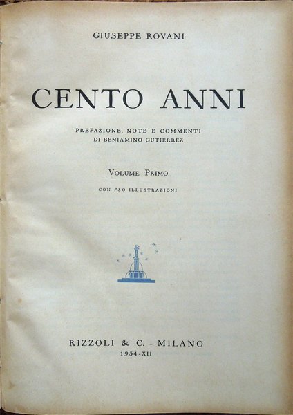 Cento anni. Prefazione, note e commenti di Beniamino Gutierrez. Volume primo con 730 illustrazioni. Volume secondo con 900 illustrazioni