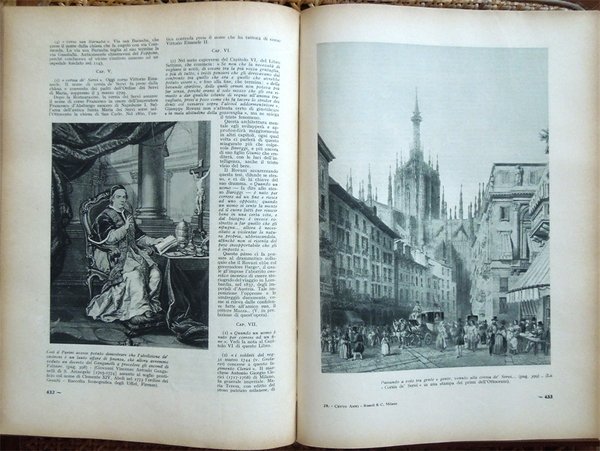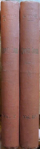 Due volumi in-8° (27,4 x 19,8 cm), pp. (4), 635, (1); (4), 699, (1), legatura coeva in tela con titoli, sbiaditi. Normali segni d'uso e del tempo alla legatura, in particolare, un piccolo foro al dorso del volume primo e qualche alone al piatto posteriore del volume secondo. Opera dal ricchissimo apparato iconografico, composto di complessive 1630 illustrazioni in bianco e nero nel testo, alcune delle quali a piena pagina, raffiguranti incisioni con ritratti di personaggi storici e vedute di città, frontespizi di libri, documenti, disegni. Al volume primo, conservata la copertina anteriore della prima dispensa, copertina che si presenta maldestramente rifilata. Al volume secondo, nel margine inferiore del foglio con le ultime due pagine, lontano dal testo, piccola mancanza reintegrata con carta giapponese. Normale patina del tempo alle pagine, che presentano leggere arrossature ai margini dovute al tipo di carta. Per il resto, ben conservato. Le vicende narrate nel romanzo hanno inizio a Milano in una notte del febbraio 1750, per concludersi a Venezia nell'agosto del 1849, nel corso dell'estrema difesa della città dall'assedio degli Austriaci. L'opera raccoglie una straordinaria messe di notizie e di aneddoti su personaggi realmente esistiti e su vicende storiche, tratteggiando, con una narrazione viva e coinvolgente, l'ambiente e la vita della Milano e dell'Italia del Risorgimento.