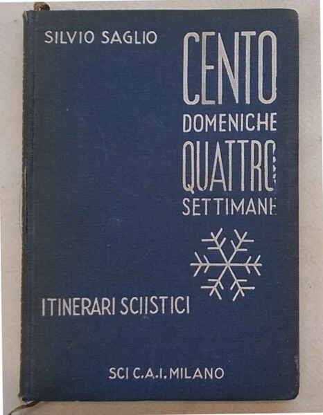 In 16° (cm. 16 x 11); pagg. 246; piena tela azzurra con titoli e vignetta impressi in bianco; minimi difetti al dorso, ma molto buona. VG - -. ** La raccolta delle principali monografie sciistiche pubblicate da "Lo Scarpone" dalla sua fondazione. 100 itinerari di un giorno e 4 di una settimana.