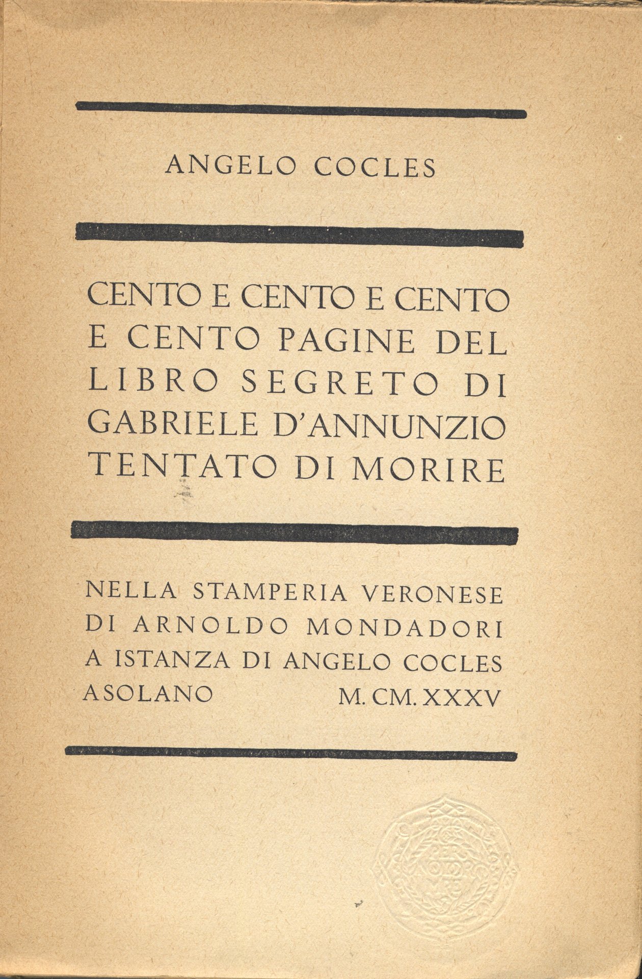 Cento e cento e cento e cento pagine del libro segreto di Gabriele D`Annunzio tentato di morire