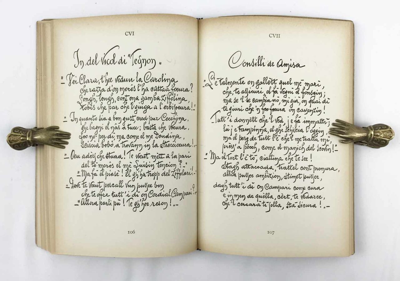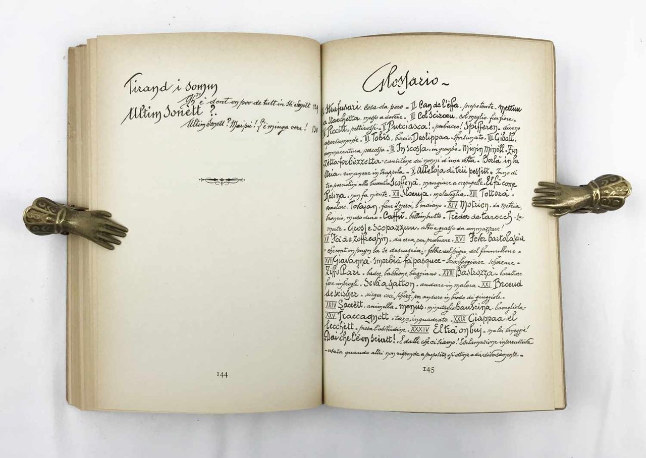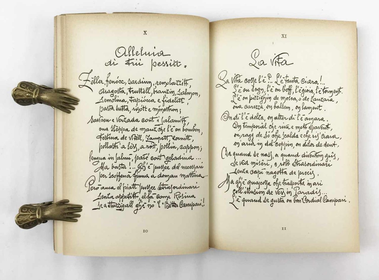 LIBROPrima edizione.Ottimo esemplare (minime mancanze marginali ai piatti, assolutamente non deturpanti; leggera brunitura marginale alle carte).Raccolta di sonetti in milanese, ciascuno dedicato a uno specifico prodotto Campari. Riprodotti in fac-simile gli autografi degli originali manoscritti in luogo dei testi a stampa.