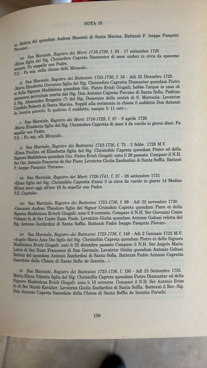 cm 17x24; a cura di furio Luccichenti; pref. di Pier Maria Pasinetti; L'opera narra gli avvenimenti della vita del Casanova che si svolsero tra il 1753 e il 1756. La morte prematura dell' A. ha impedito una revisione finale del libro lasciandolo cosi' incompiuto e dalla forma molto originale, dato che il testo si sviluppa in funzione delle note. Nondimeno questo lavoro si distingue per cura filologica e curiosità nelle ricerche FREQUENTI, ANCHE SE LIEVI, SOTTOLINEATURE A PENNA
