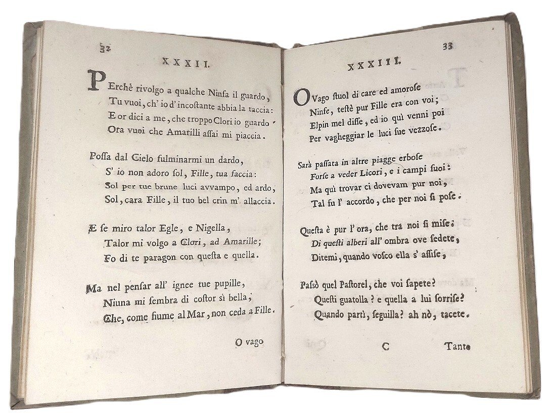 >In-8 (170x115 mm), pp. (8) 110 (2). Legatura coeva in cartonato, titolo manoscritto al dorso. Elegante frontespizio in rosso e nero con bella vignetta incisa raffigurante tre cani che abbaiano alla luna. Opera dedicata alla marchesa Carandini alla cui famiglia l'autore fu molto legato. Prima edizione, esemplare fresco e genuino.