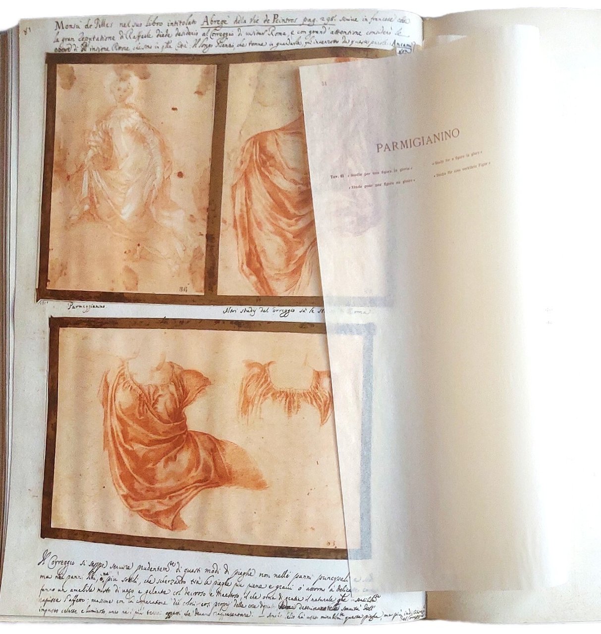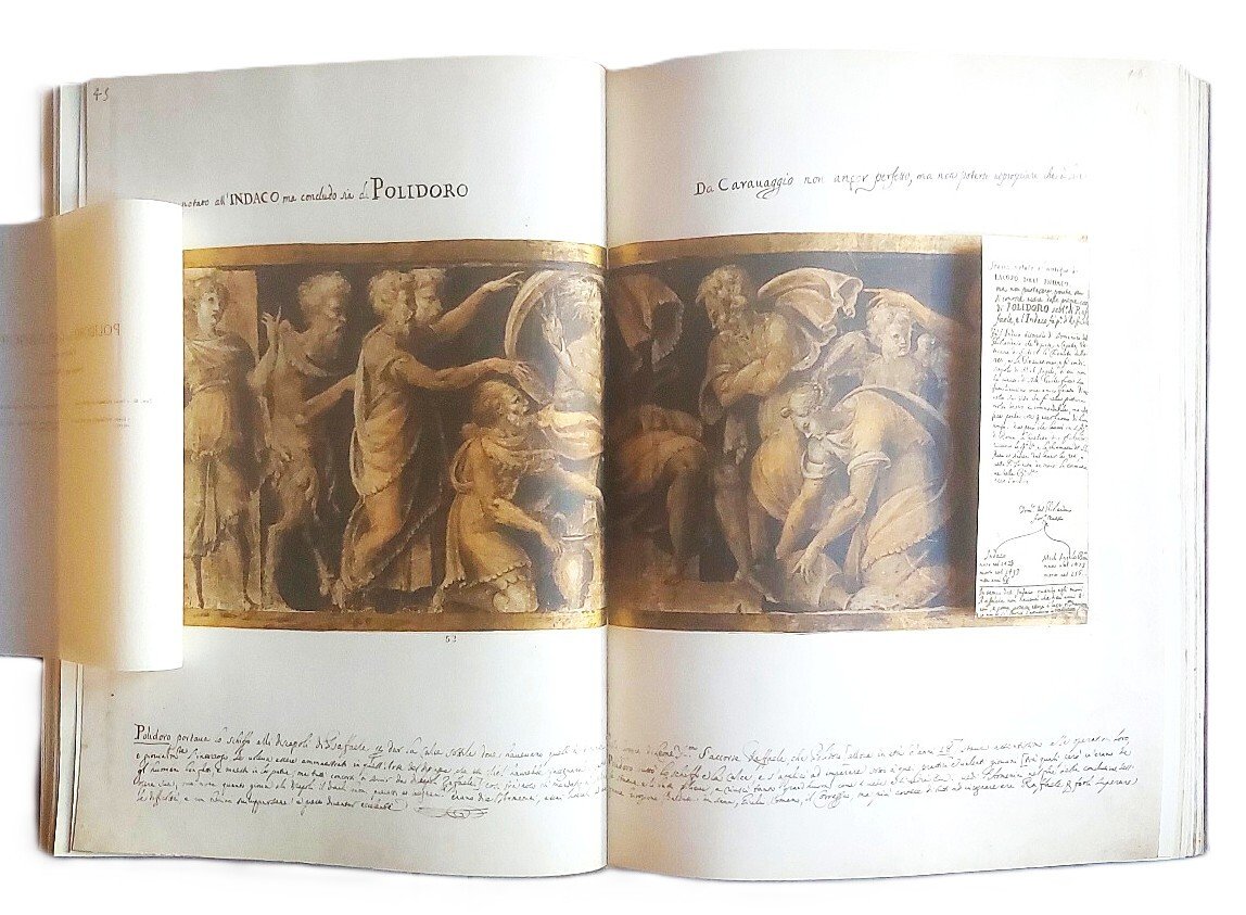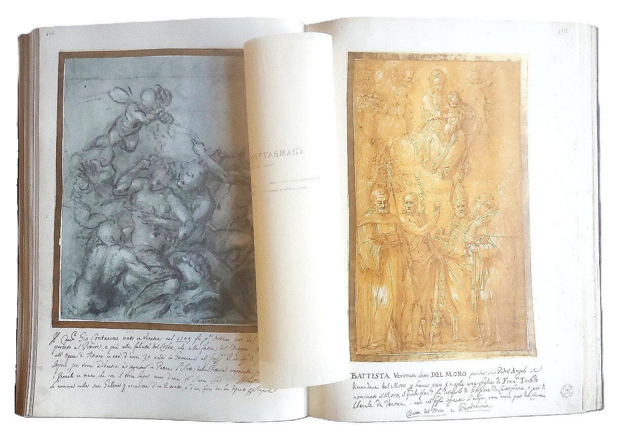 >in-folio grande (520x360 mm), pp. (12 di introduzione), ff. 104 illustrate con riproduzioni delle tavole a colori, protette da velina con scheda tecnico-artistica ad ogni singola tavola. Introduzione e didascalie in italiano, francese, inglese e tedesco. Legatura editoriale in mezzo cuoio con dorso a nervi, e piatti in cartone decorato che riproducono la legatura alle armi del Codice originale (lievi spellature). Selezione di 100 disegni del Codice Resta conservato integro all'Ambrosiana (formato a fine seicento dal Padre Sebastiano Resta e acquisito dalla biblioteca milanese nel 1706), famosa raccolta di 280 disegni di Maestri italiani antichi. Riproduzione in facsimile di misure e di colori, di grande qualità e di perfetto risultato. Sontuosa e stupenda edizione d'arte impressa in 2030 esemplari numerati, in cui sono riprodotti i disegni di Leonardo da Vinci, Andrea Mantegna, Giovanni Bellini, Botticelli, Piero della Francesca, Correggio, Tintoretto, Nicolas Poussin... Il Codice Resta è una raccolta di disegni che per tipologia, qualità e quantità dei soggetti non aveva precedenti e non avrebbe avuto eguali: disegni originali, bozzetti, studi, miniature dei più grandi artisti che avevano caratterizzato le età precedenti e che soprattutto segnavano il XVII secolo. Resta battezzò questa straordinaria antologia “Galleria portatile”, un vero museo itinerante che ripercorre la storia dell'arte italiana da Giotto fino ai suoi giorni, con disegni dei “capi delle quattro scuole Fiorentina antica, Romana antica e moderna, Lombarda antica, Veneziana antica e moderna”. Stupendo esemplare.