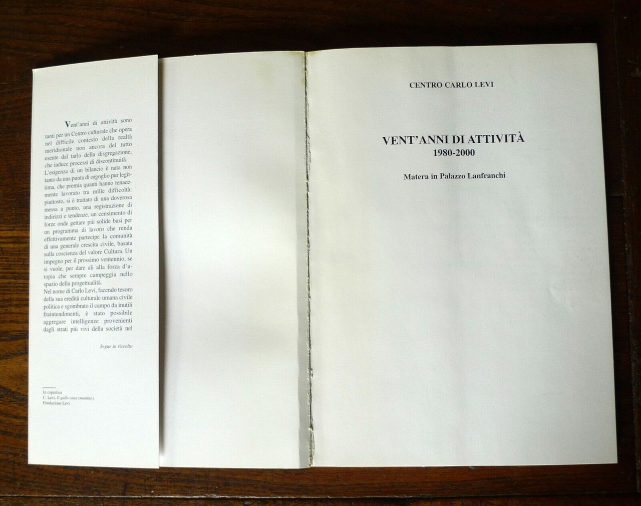 CENTRO CARLO LEVIVENT'ANNI DI ATTIVITÀ1980-2000.Matera in Palazzo Lanfranchi.LA TIPOGRAFICA, Matera 2000,brossura, 22,5x16 cm., pp.105,illustrazioni in nero e a colori,peso: g.300
