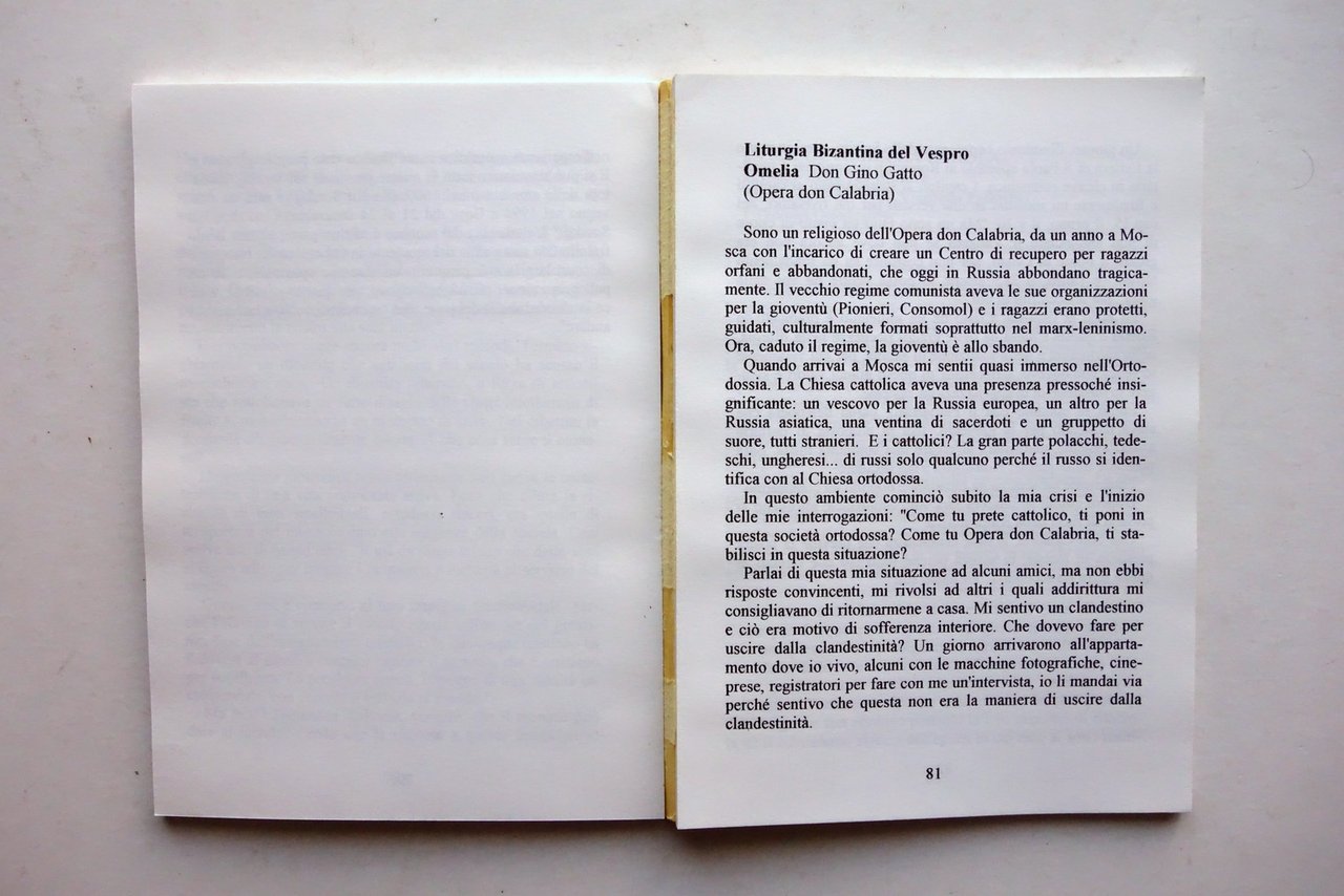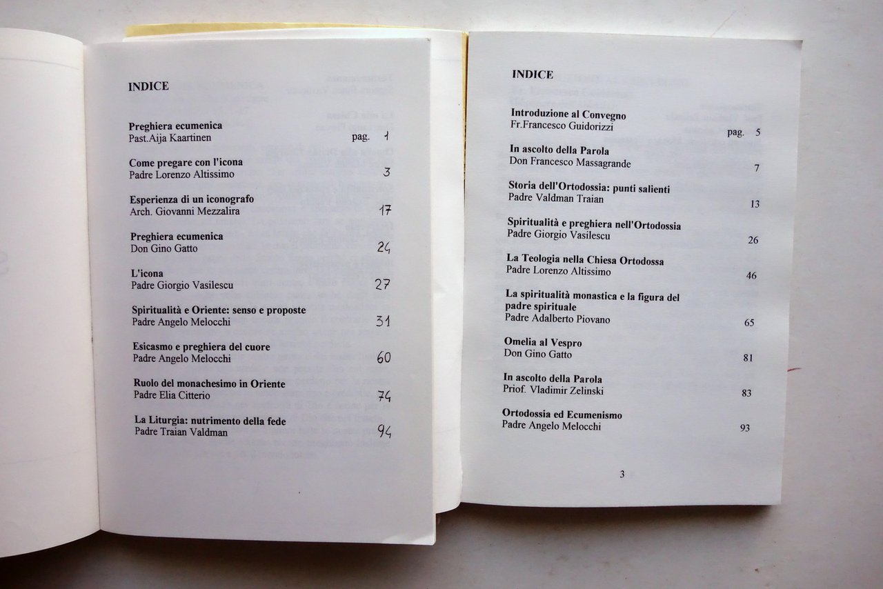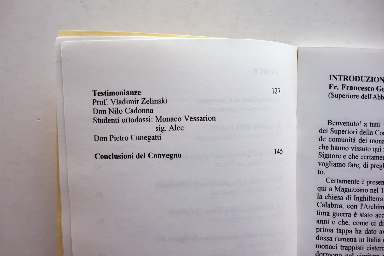AA. VV. 2 atti di convegno, Centro Ecumenico Abbazia di Maguzzano" Quaderni ecumenici - La Spiritualità Ortodossa *** Conoscere i fratelli Ortodossi Centro Ecumenico Abbazia di Maguzzano - Istituto Don Calabria, Lonato (BS), 1993-1994; cm 20,5x14,5; pp. 146 (atti del 1993); pp. 158 (atti del 1994); brossura ed. Alla prima bianca timbro di vecchia biblioteca, esemplari entrambi regolarmente annullati. Due volumi. Condizioni di conservazione Entrambi in buone condizioni con leggere tracce d'uso. Volume - atti del 1993 con fessurazioni al margine interno di qualche pagina, in particolare a pagina 81, con conseguente parziale distacco di alcune pagine (vedi foto). Due volumi. SETT82.L24702 N "