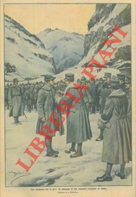 Cerimonia sulle nevi : la consegna di due medaglie d'argento al valore.