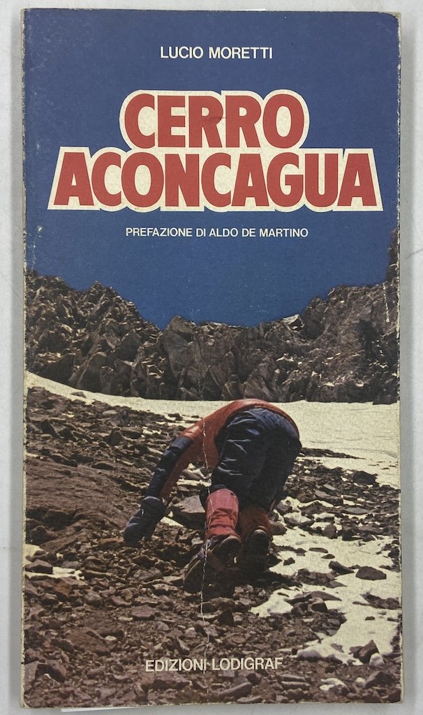 Brossura editoriale illustrata, cm 12x21, pp 113 (7), fotografie a colori fuori testo e alcune illustrazioni e schizzi in nero. Edizione originale. Testo a cura di Lucio Moretti dagli appunti di Pierantonio Ercoli che, con Pietro Abbà, ha realizzato la spedizione «ACONCAGUA ’80» patrocinata dal CAI di Lodi. Quarta di copertina dell’Accademico CAI Mario Dotti. Agile resoconto, con cronologia, fotografie e cartine, della spedizione lodigiana alla maggiore vetta americana.