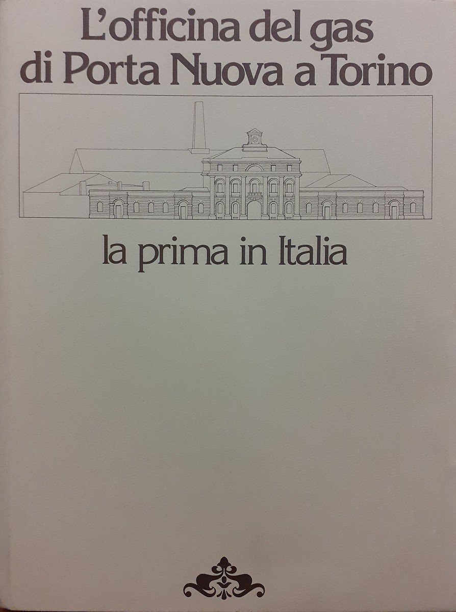 Renato Cerutti, Enrico Gianeri, L’officina del gas di Porta Nuova a Torino. La prima in Italia, s.n., s.l. (ma stampato a Leynì, presso la tipografia Centrostampa) 1978, pp. 227, ill. b.n., cm 29, cart. ed. con sovraccoperta e acetato ed. di protezione. Volume edito a cura della Società Italiana per il Gas – Torino. Indice: Torino al buio – Il mistero lebon – Arriva il gaz in Europa! – L’officina di Porta Nuova – Nasce il gazometro – Il gazometro della Crocetta – Le voci della stampa – L’importanza del carbone – Arriva il gaz a Torino – Ancora tubi: quelli di ferro e quelli di ghisa – I lattonieri torinesi – I caffè risplendono – La polizza dell’abbonato al gaz –I difficili inizi della Compagnia – Il primo dividendo agli azionisti. Minime tracce d’uso alla sovraccoperta in acetato, per il resto ottimo esemplare.
