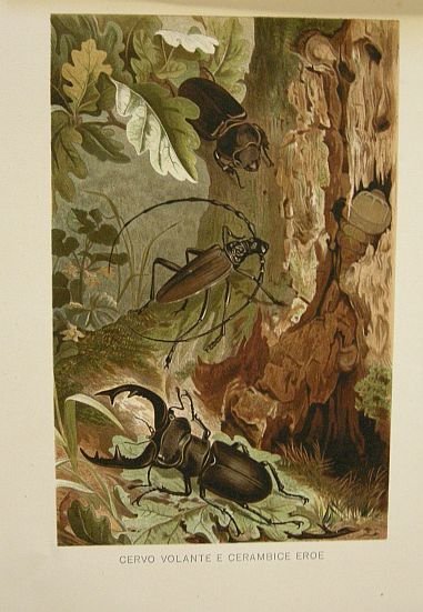 Cervo volante e cerambice eroe. Tratto da "La vita degli animali" di A.E. Brehm. Seconda edizione sulla terza tedesca a cura del Prof. M. Lessona.