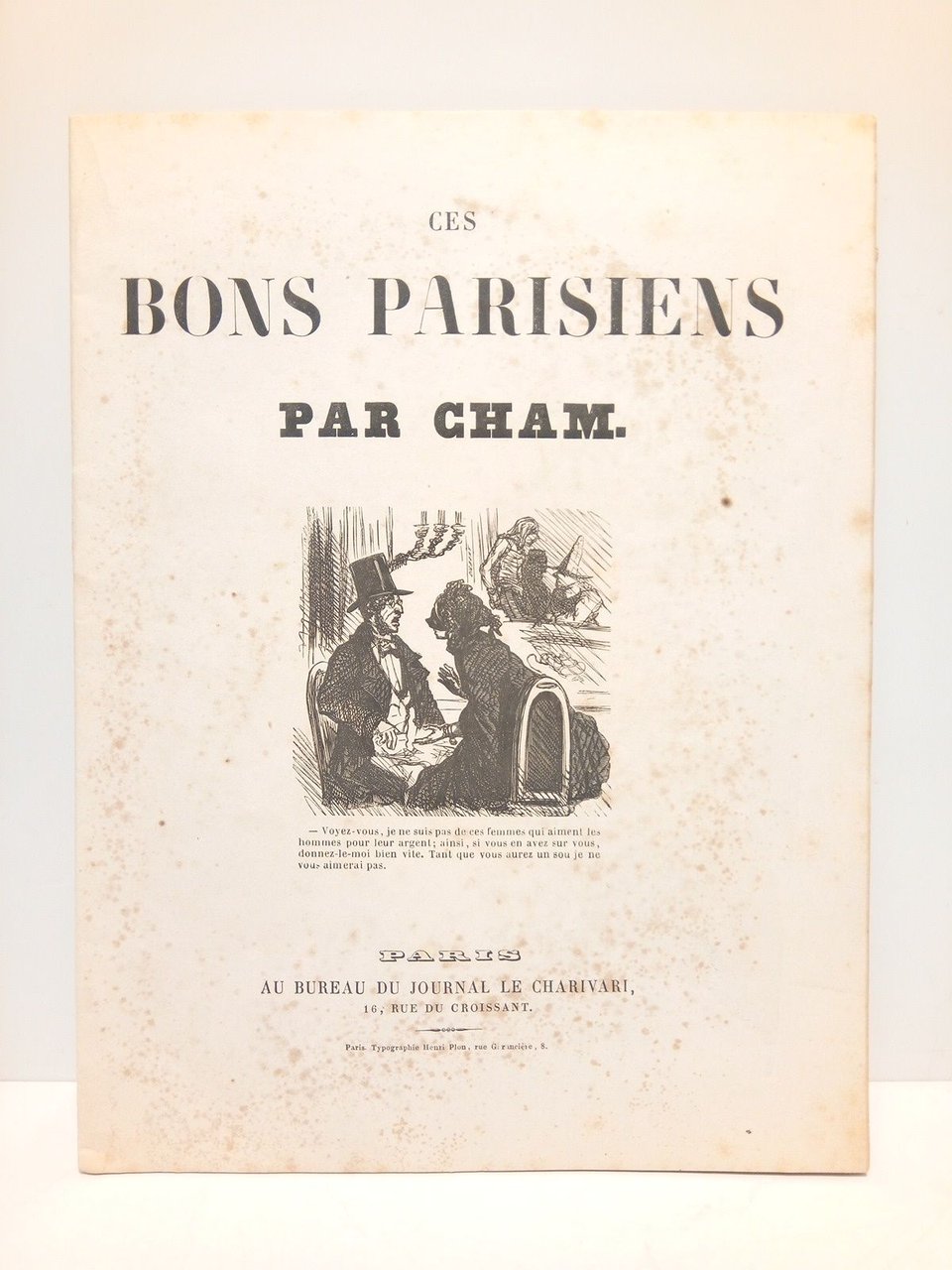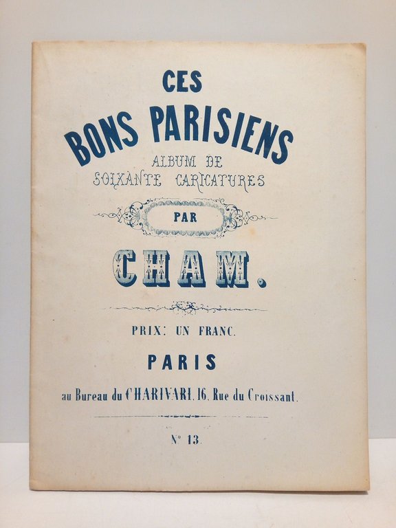 CES BONS PARISIENS: Album de soixante caricatures. [Bonito álbum de 15 láminas xilográficas satíricas en negro, con 4 caricaturas cada lámina que suman un total de 60 caricaturas con leyendas al pie de cada una]