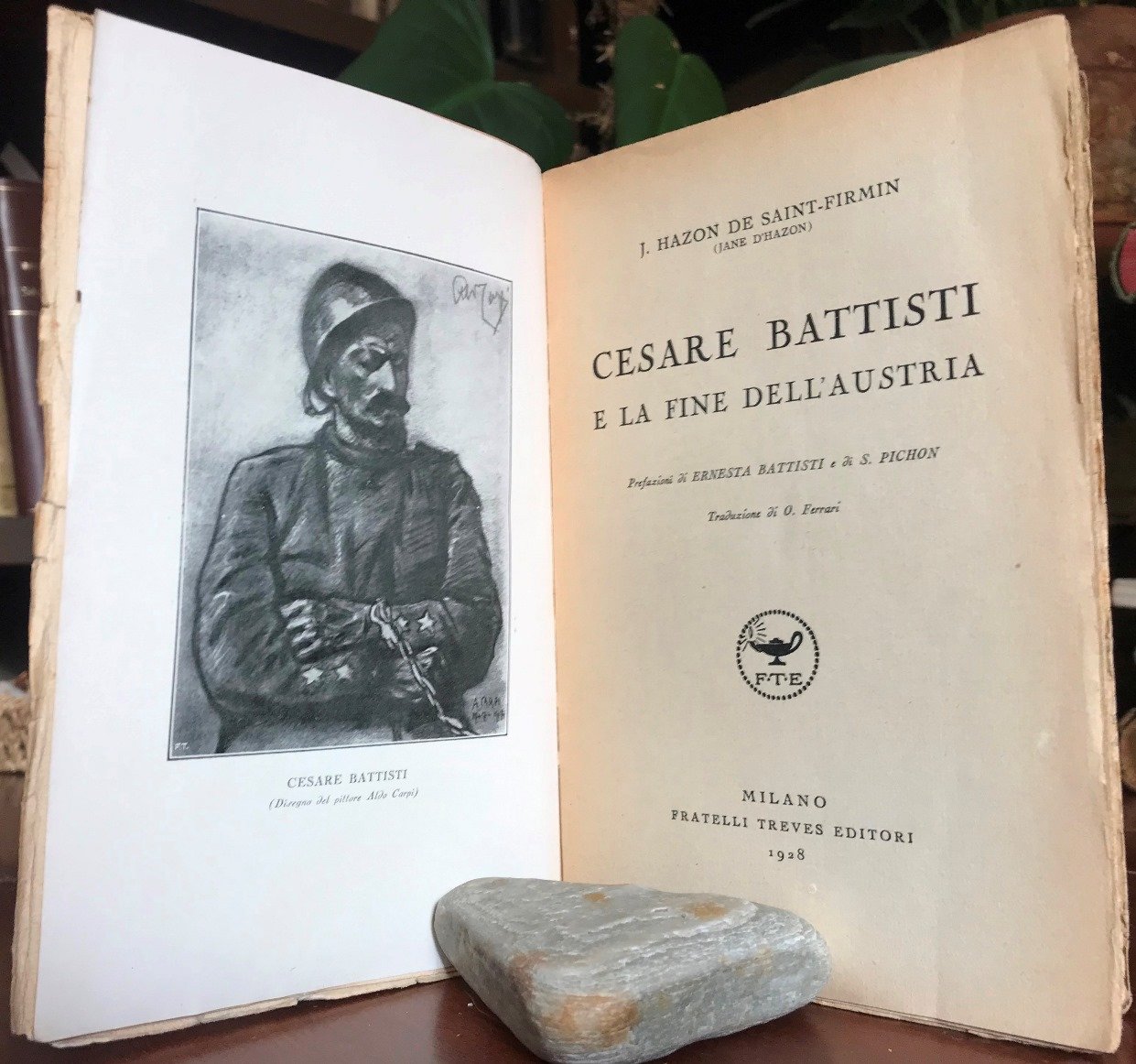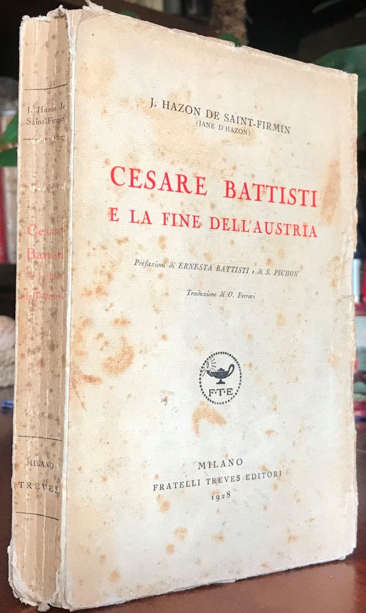 Volume in 8, brossura editoriale, titolo al piatto ed al dorso, occhiello, tavola d'antiporta con ritratto del Battisti da un disegno del pittore Aldo Carpi, frontespizio, prefazioni, XI, 274 pp., bianca finale. Ampio ed interessante saggio storico biografico su questo particolare personaggio irridentista, il suo pensiero politico e sociale, la sua lotta politica contro l'Austria. Un importante pagina di storia italiana. Macchiette ed arrossature alla sola brossura. In pi che bello stato di conservazione. Rara a reperirsi.