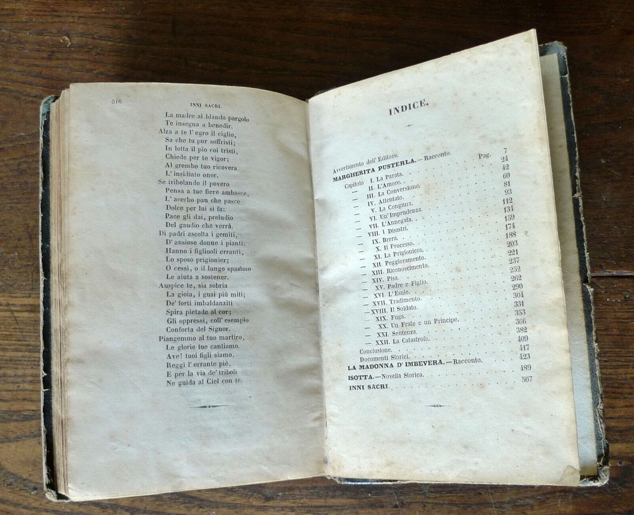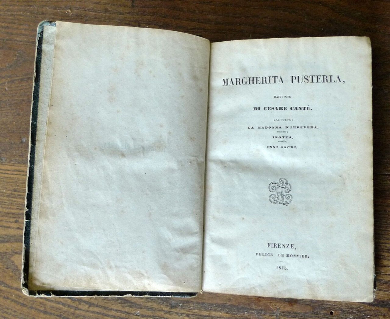 MARGHERITA PUSTERLARACCONTO DI CESARE CANTÙ.AGGIUNTOVI: LA MADONNA D'IMBEVERA, RACCONTO;ISOTTA, NOVELLA;INNI SACRI.FIRENZE, Felice Le Monnier, 1845,cpertina rigida, rilegatura coeva in mezza pelle,18,5x12 cm., pp.516,peso: g.450